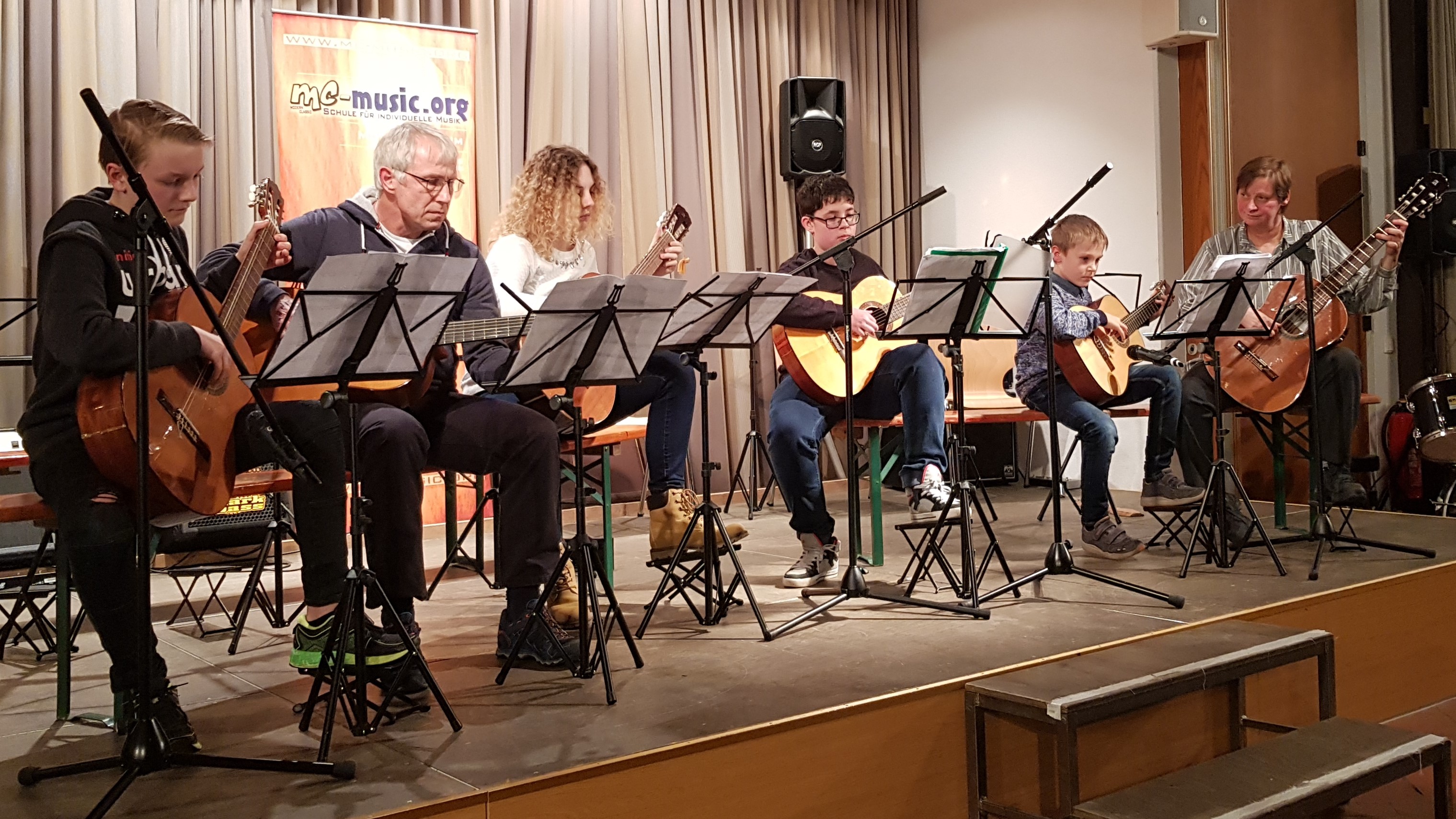 Du erwirbst bei uns Kenntnisse über Noten- und Tabulaturlesen und schreiben. Du lernst alle Akkorde über das ganze Griffbrett, Begleitrhythmen, Flatpicking  und Fingerpicking. Außerdem den Umgang mit Akkordsymbolen, was sie bedeuten und was du damit alles „anstellen“ kannst. Deine Fingertechnik wird geschult und verbessert, auf verschiedene Musikstile wie Blues, Jazz, Country, Rock, R ‘n R oder Heavy Metal wird eingegangen und ein Repertoire geschaffen, damit du gewappnet bist für unsere vielen Konzerte und Auftrittsmöglichkeiten. Dabei sind kleine und große Gruppen möglich.